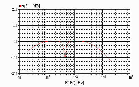 Here are some representative curves of responses this circuit can generate. The first is with the controls set more or less "flat".